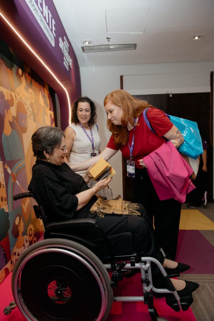 Esta não é a primeira vez que Manoela e Maria da Penha se encontram, mas a professora se emociona sempre. “Foi mais um encontro incrível. Não foi a primeira vez. Ela já conhece o nosso projeto desde o lançamento institucional em 2022. Em 2024, acompanhou o lançamento da segunda edição e nos encontramos em Fortaleza, Ceará, a convite dela no evento promovido por seu instituto e articulando a rede nacional de enfrentamento a violência doméstica contra a mulher. Temos uma relação de reconhecimento, impulsionamento, orientação e caminhos possíveis para alcançar cada vez mais territórios e viabilidades de financiamento, assim, alcançando escolas em mais e mais lugares”, completou.