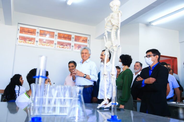 O prédio em Senador Canedo possui biblioteca, laboratórios de Ciência e de Informática, bloco administrativo, sala de professores, auditório, cozinha, pátio coberto com refeitório, banheiros, sala de grêmio estudantil e quadra poliesportiva com cobertura e vestiários. A nova unidade terá ainda estacionamento interno e ampla área de convivência. “O que nós queremos dar a vocês é o que tem de melhor”, afirmou Caiado ao vistoriar um dos laboratórios.