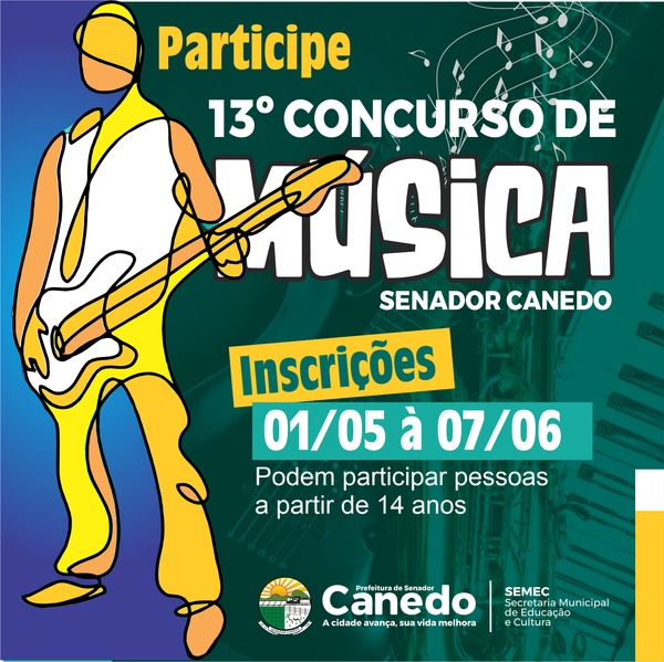 Prefeitura de Senador Canedo abre inscrições para 13º concurso de música com premiação de até R$ 2 mil