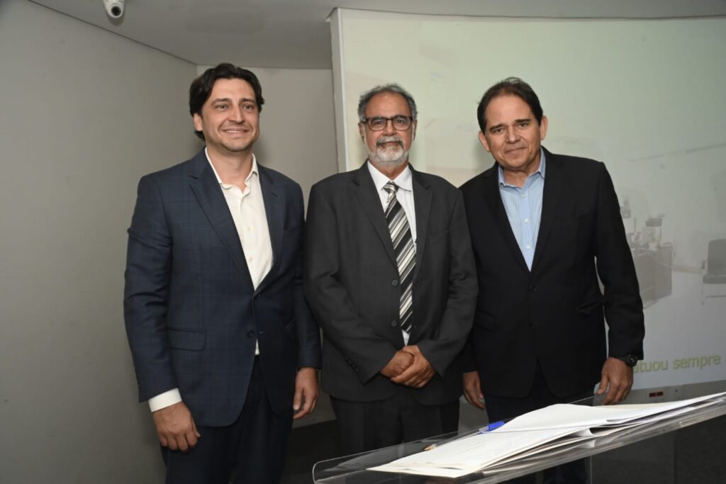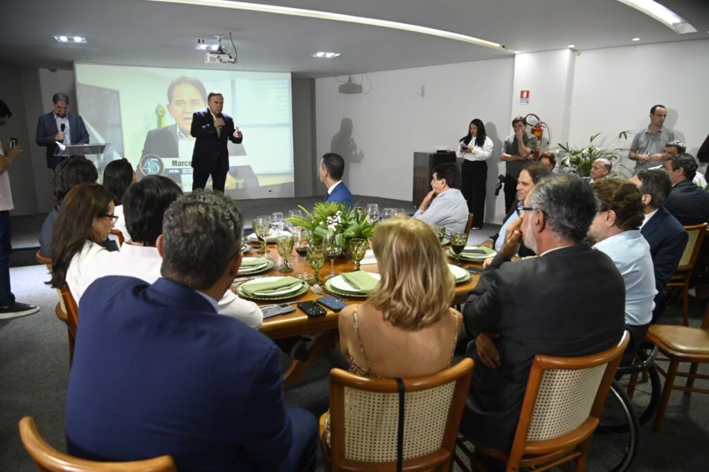 A solenidade reuniu autoridades políticas e lideranças do setor produtivo goiano, como o prefeito Sandro Mabel e o deputado estadual Virmondes Cruvinel.